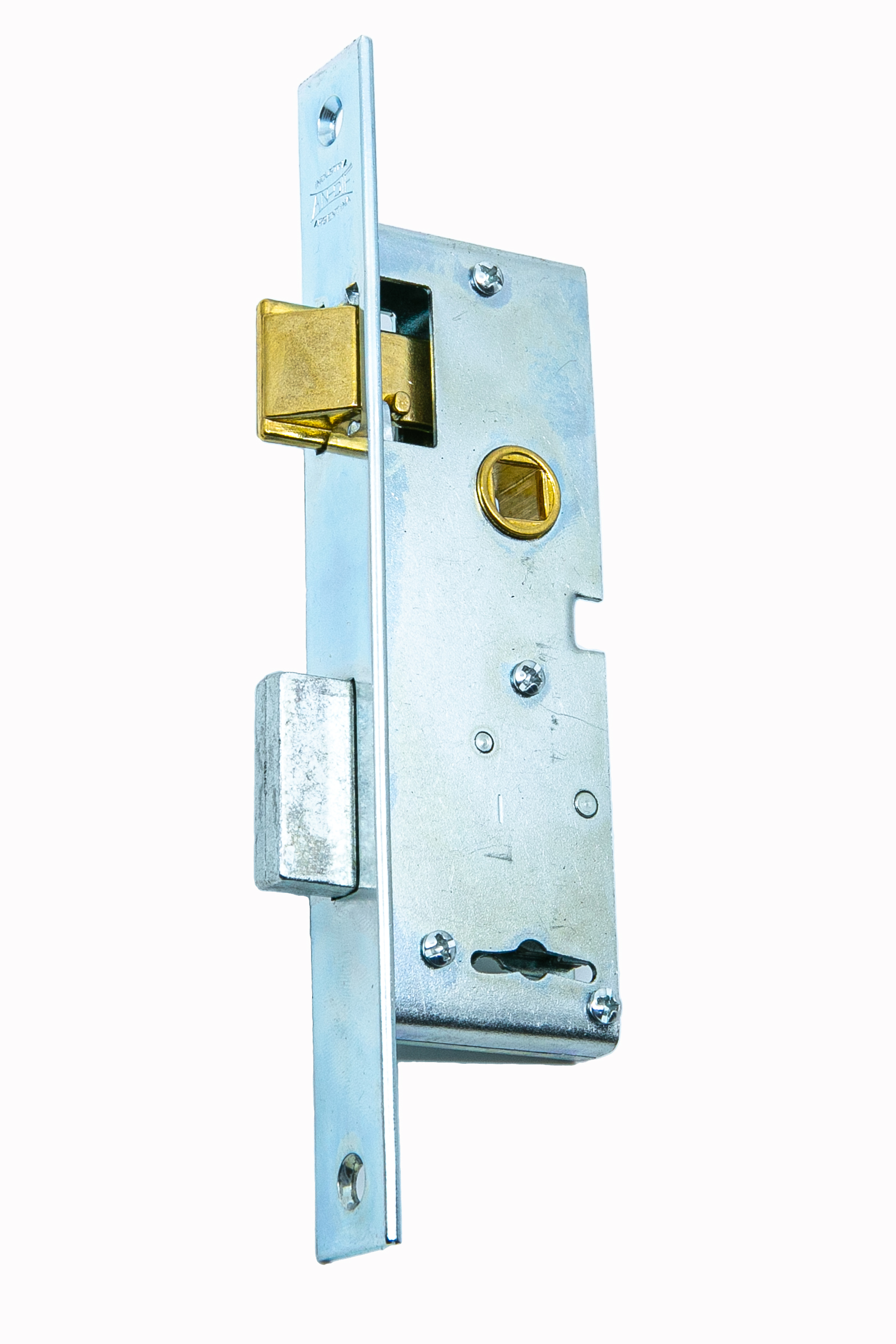 Linea de aluminio. Frente pesado de 2,50 mm. Caja blindada en chapa de hierro espesor de 1,25 mm. 4 combinaciones de hierro galvanizado. Pasador rectangular de 7 x 32 mm. Pestillo, nuez y 2 llaves 100% bronce. Zincada en azul.