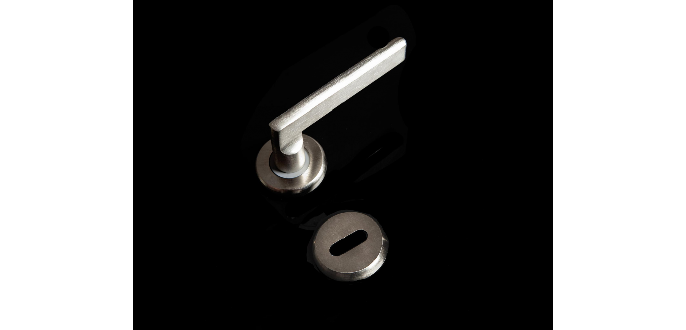 Manija Artum doble balancin con roseta y bocallave 50 mm. Color INOX.