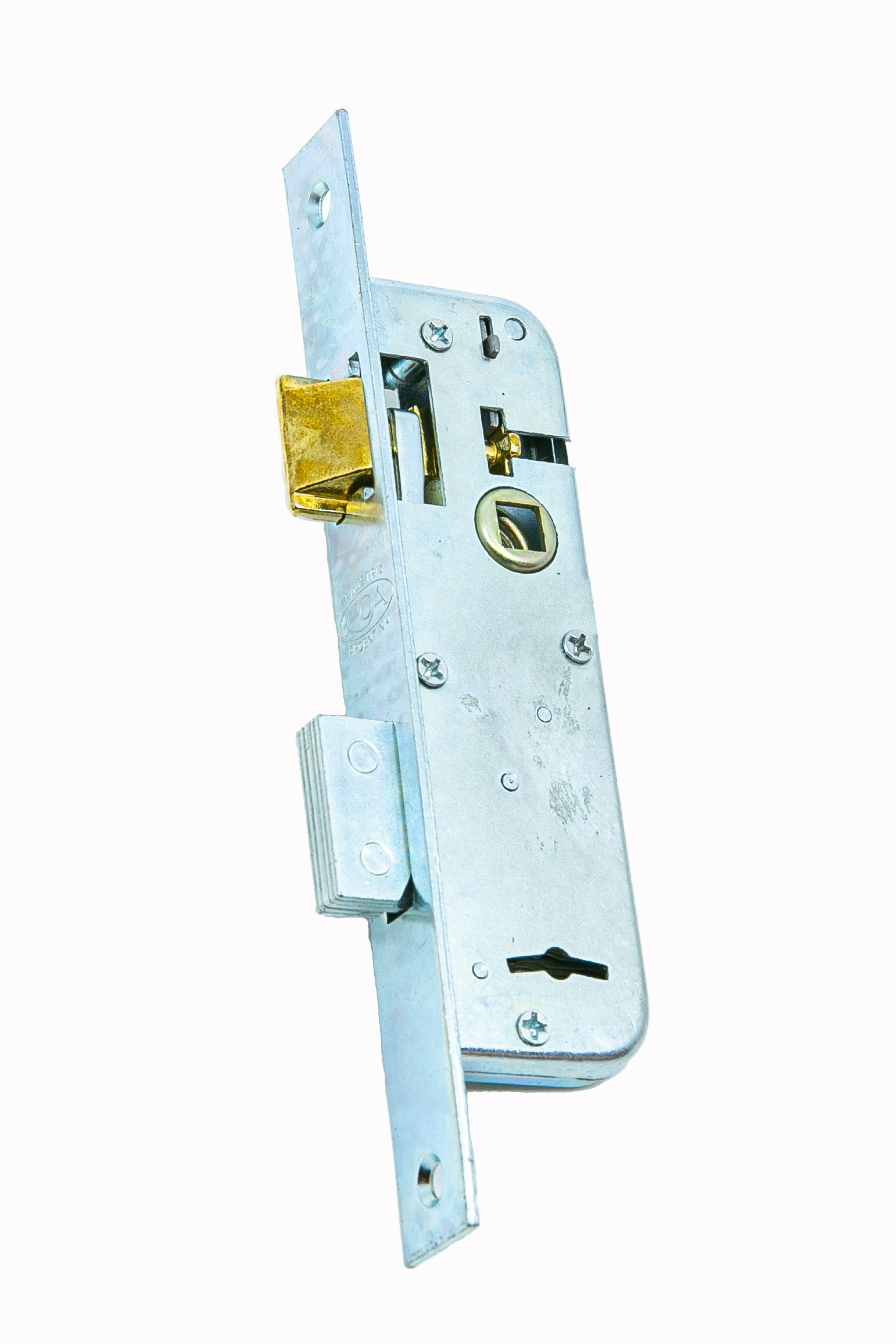 Con 4 combinaciones de hierro. Pasador rectangular. Mano del picaporte reversible sin desarmar la cerradura. Acabado zincado. Bocallaves de aluminio. Ideal para rejas, portones y puertas de parante angosto.
